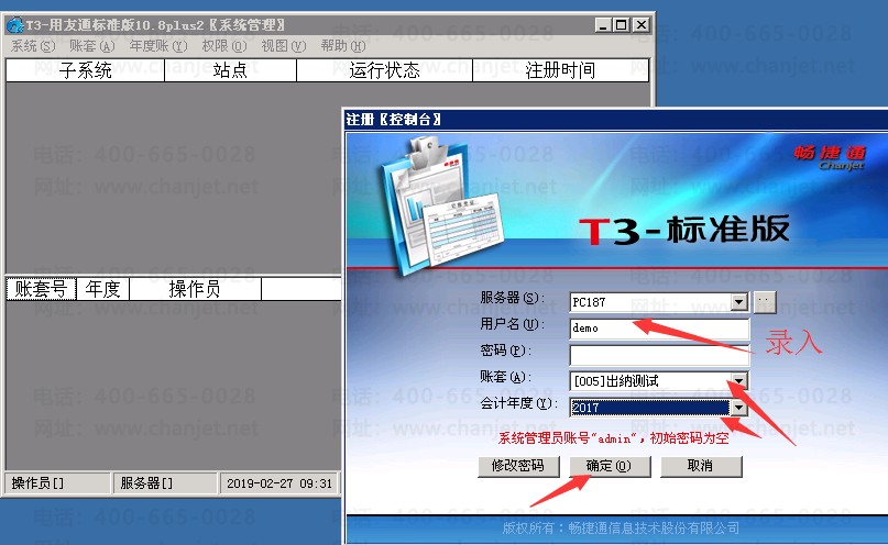 2、录入用户名(账套主管),选择账套,年度。