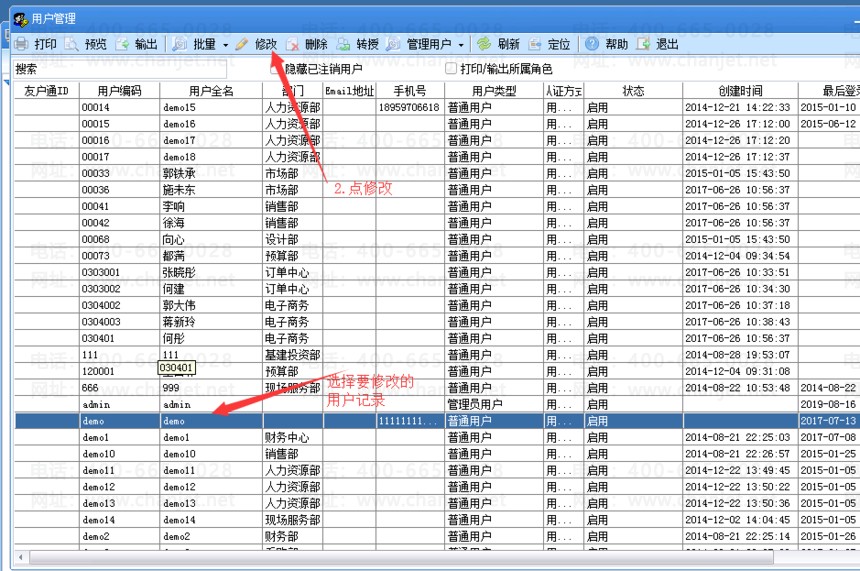 4、选择要修改的用户记录——修改
