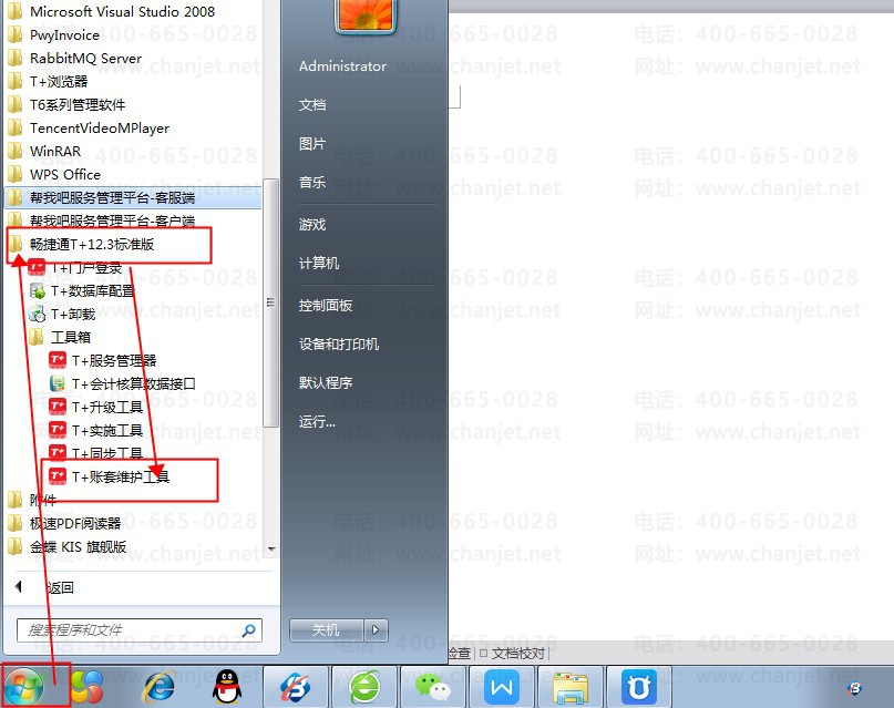 一、电脑开始菜单-找到T+软件-T+账套维护工具