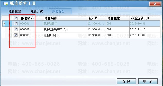 二、打开账套维护工具,选择所有账套,点击备份