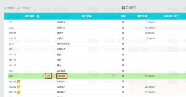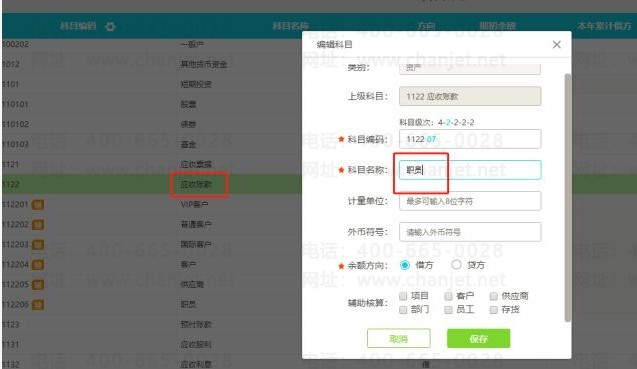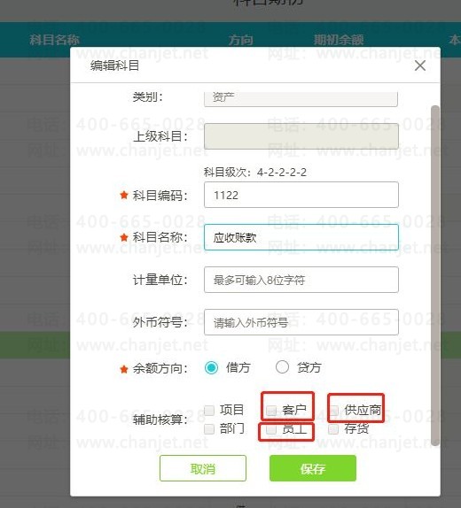 a.点击【设置】-【科目期初】,将【应收账款】科目已经挂的【客户】、【供应商】、【职员】辅助核算取消;