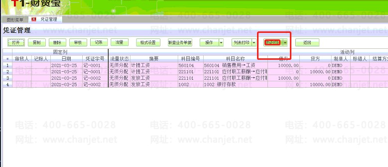 操作步骤:在【财务管理】-【凭证管理】界面,可以按住shift键再连续选中或是按住ctrl快捷键一个个选中凭证后(按住【CTRL+a】后可以全选凭证。),再点凭证打印。支持A4纸张以及套打纸。如下图: