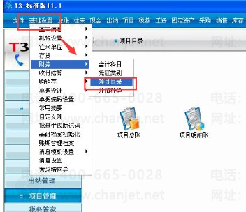 1、依次点击最上面一行功能菜单的【基础设置】--【财务】--【项目目录】;如下图