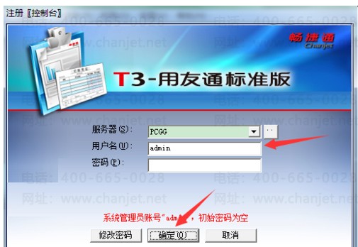 3、用系统管理员admin进行登录;
