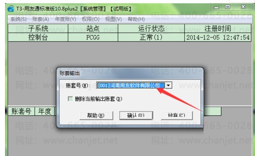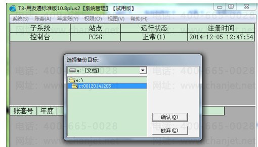 5、选择要备份的账套,然后点击确定;