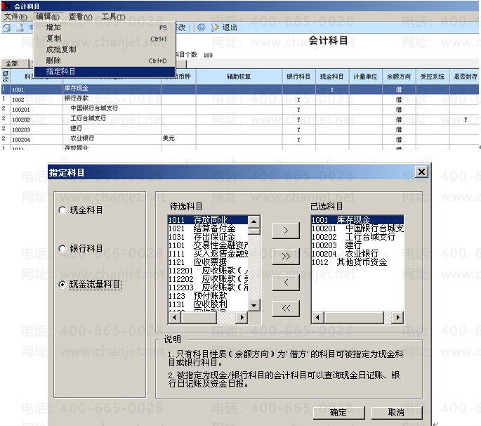只有指定了现金流量科目,系统才会判断哪些科目发生的金额是需要记入现金流量表中。