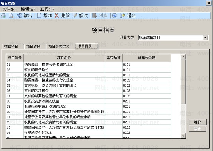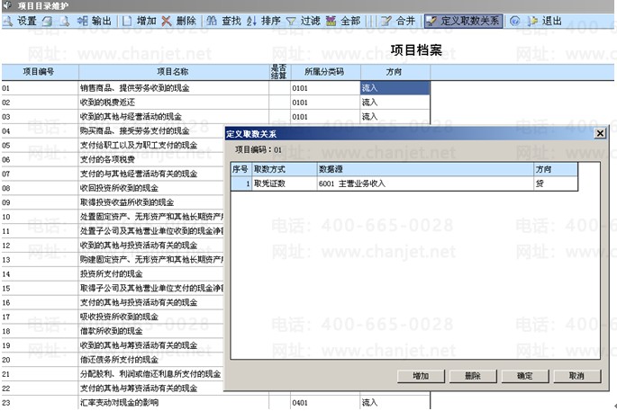 系统根据建账时选择的行业类型内置了现金流量项目,但是也提供新增、修改、删除功能,允许客户在此基础上进行现金流量项目的设置。
