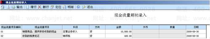 7、系统默认期初数据录入的系统登录日期,作为现金流量明细表查询中期初数据的日期显示。