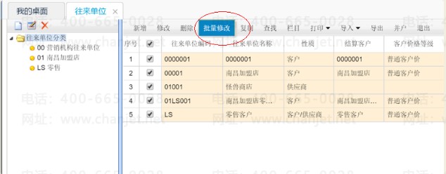 依次点击【基础设置】-【基本信息】-【往来单位】-【批量修改】