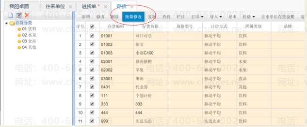 依次点击【基础设置】-【基本信息】-【存货】-【批量修改】