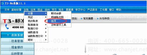 (1)首先查看建账时选择的行业性质,依次点击最上面一行菜单栏的【总账】--【设置】--【选项】