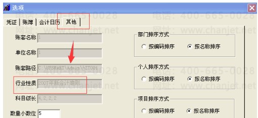 (2)在【选项】中找【其他】页签,查看【行业性质】一栏会写明建账时候选择的行业性质。如下图