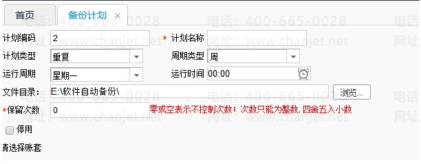 第三步:点击增加,可以查看到一个对话框。填写备份的编号、名称,同时要选择备份的周期,可以选择一天,也可以一周,这个看具体的情况。把备份的时间改成每天09:00:00,且规定每天的有效时间,以及备份的保存天数。最后要选择一下备份的路径,及在E盘下面的“自动备份”。并且选择备份的账套。