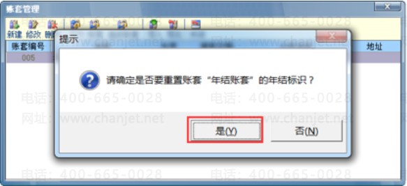 删除新年度账套后,还需要在账套管理中选中上年账套,按快捷键CTRL+L重置年结标识,才能重新选择到账套年结。