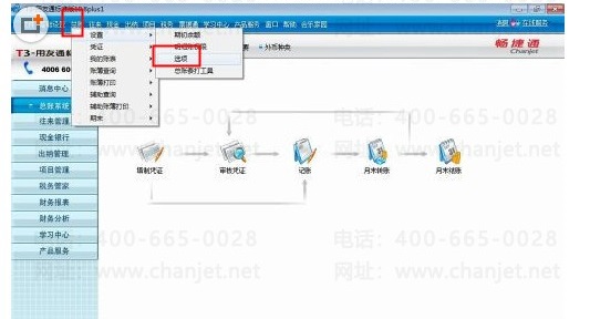 1、打开用友T3软件,点击顶部菜单总账——设置——选项功能;