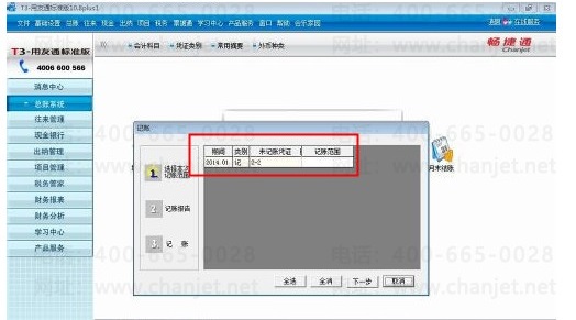 5、未审核的凭证,记账成功。