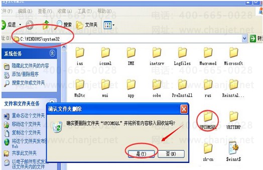 3、如果需要重新安装用友T3财务软件,如果不需要的话这一步骤可以不用操作,记得把软件也卸载掉,卸载之后再把c:\windows\system32\ufcomsql 文件夹删除,如果是64位系统,记得把c:\windows\syswow64\ufcomsql 文件夹删除。