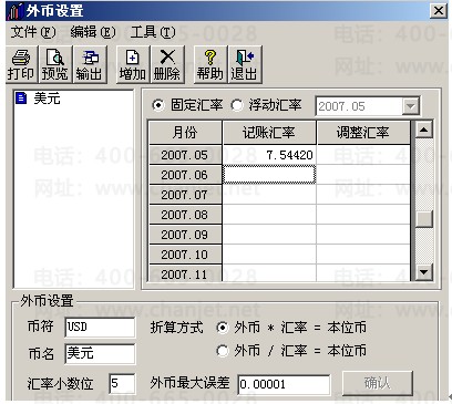 畅捷通T3外币种类