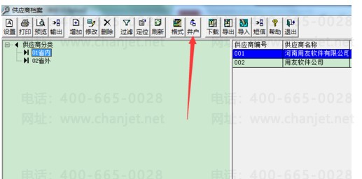 1、依次点击基础设置——往来单位——供应商档案,在弹出的对话框里点击“并户”;