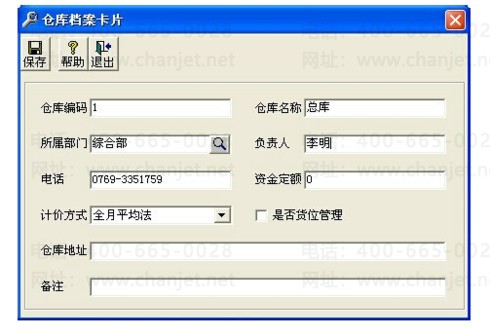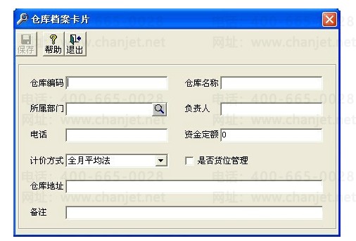 3、这时就会弹出“仓库档案卡片”对话框,如下图: