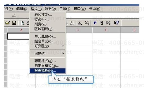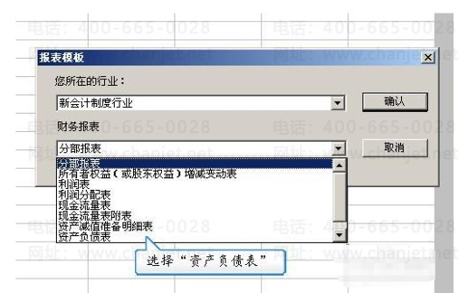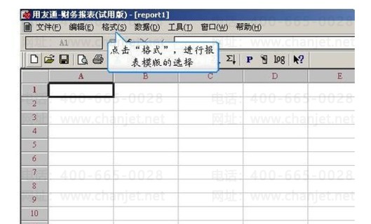 2、新建按钮后,在菜单中,我们能够选择点击“格式”,进行报表模板的选择,选择的类型还是有很多的。如图所示,我们能够看到的模板有资产负债、现金流量、所有者权益等报表。