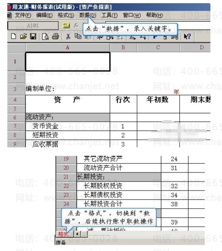4、点击格式按钮,切换到数据,后续方便执行账套中去操作,在数据处录入关键字。录入相应的年份点击确认。此时一张新的报表就相应的产生了。