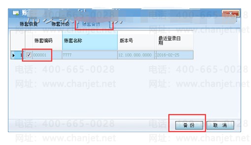 点击账套备份,勾选要备份的账套,再点击备份就可以了。