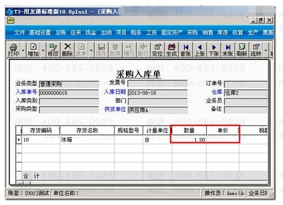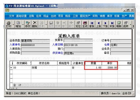 (5)记账后查看采购入库单,采购入库单的单价带出参考成本。