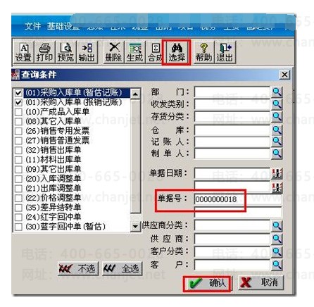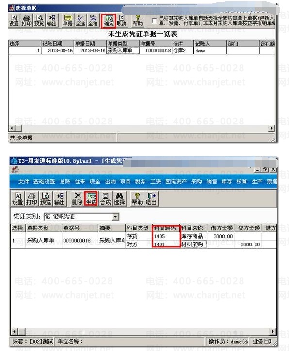(6)制单。点击“购销单据制单”——“选择”——“确定”,选中单据“确定”,输入科目名称点击“生成”——“保存”凭证就保存了。