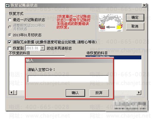 输入账套主管密码点击“确认”。