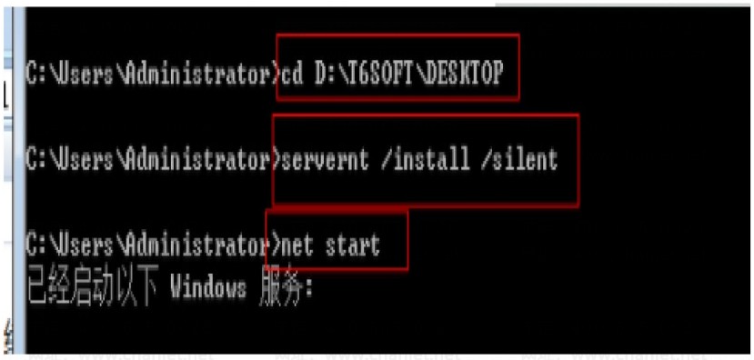 b、打开DOS窗口,开始-运行-CMD(回车) c、进入客户端服务文件存放的实际路径,如 cd D:\T6SOFT\DESKTOP回车;