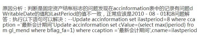 用友U8进入固定资产模块后发现系统已经自动给我把一月的固定资产结账了,我想恢复到月末结账前状态。但是系统提示: 恢复月结失败,