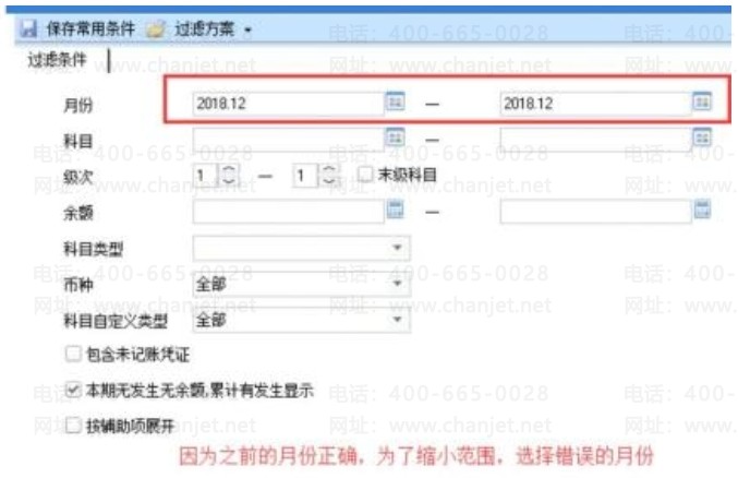 检查:从账套启用期间开始,每月核对报表。前面月份报表错误会影响后面所有月份.