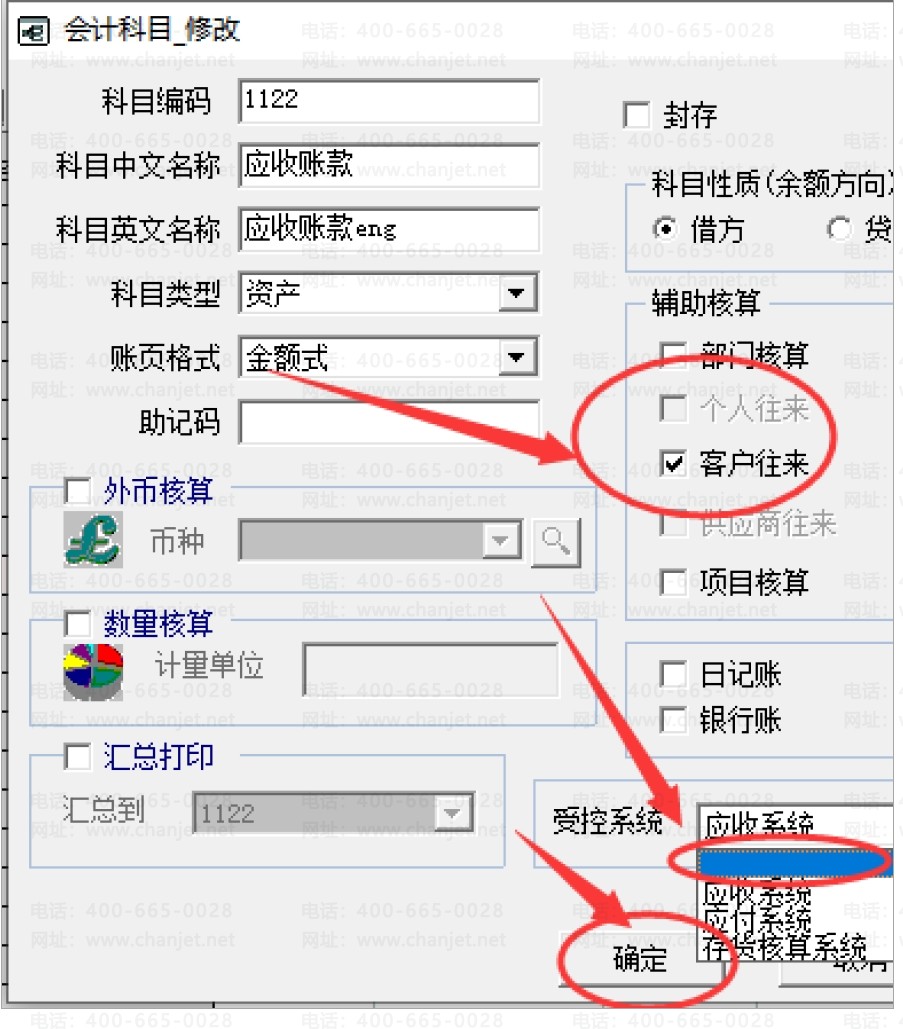这里勾选“客户往来”,下面的“受控系统”选择空白,切记!
