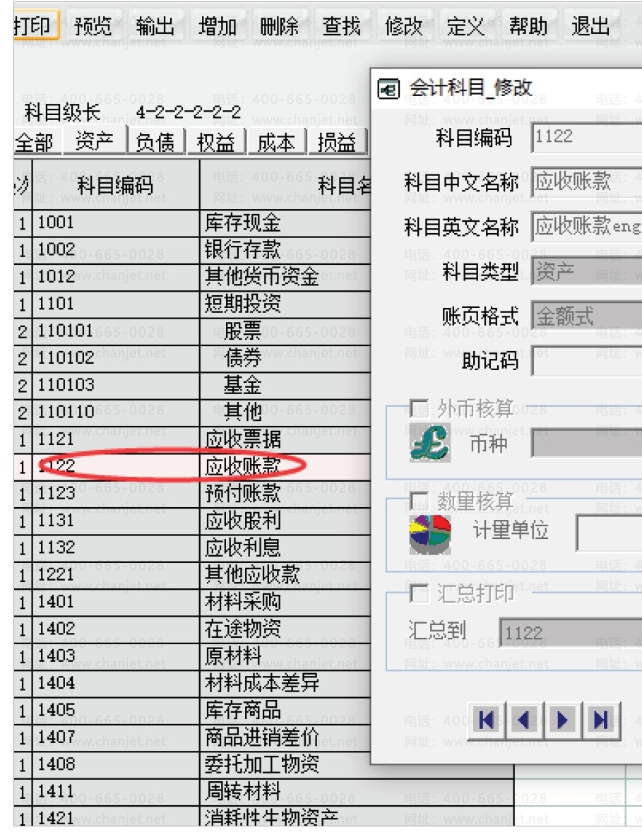 双击应收账款,弹出的界面点“修改”。