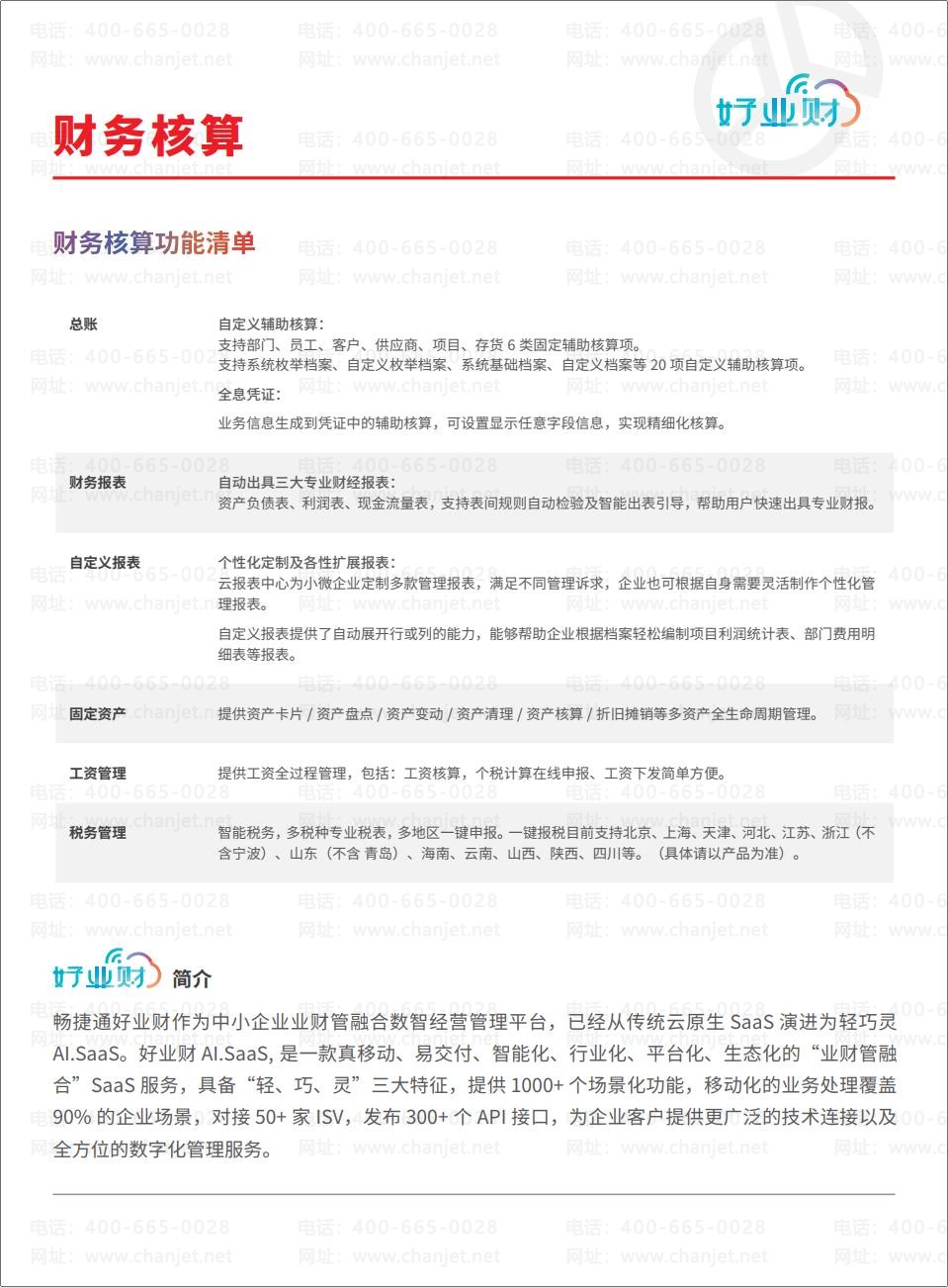 财务核算:好业财产品功能清单