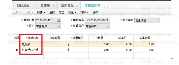 注意,零售单联查零售出库单时,为成套件的子件直接生成出库单: