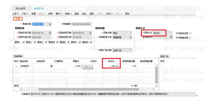 促销期间,每单限购一套组合商品(组合商品为1个A+2个B),一套原价1888元,促销期间,购买一套单价优惠额300。