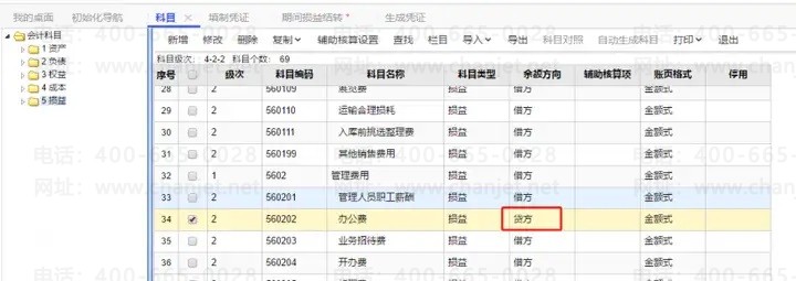 2. 检查费用、成本类科目余额方向在不在借方,不在借方要修改为余额方向为借方;收入类科目余额方向在不在贷方,不在贷方要修改为余额方向为贷方。