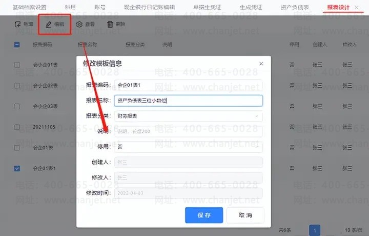 选择新增的报表模块,点击编辑按钮,修改名称后点击保存: