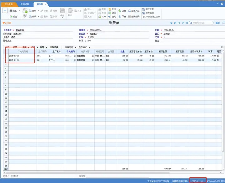 到货单手工关闭时,关闭日期取值是关闭操作时的登录系统日期。