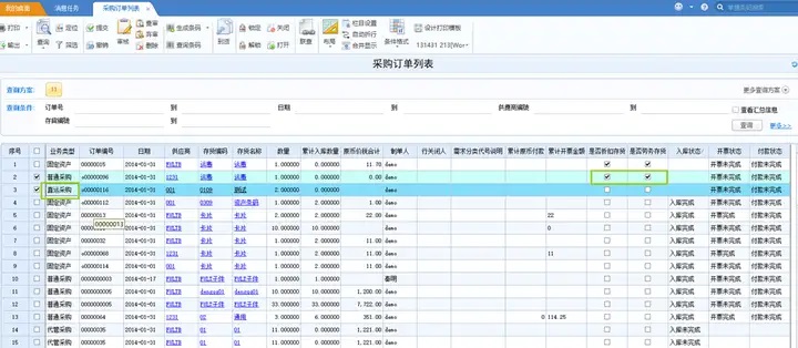 (选择发票完成,系统自动勾选入库完成;去掉勾选入库完成,发票完成也会自动去掉勾选)