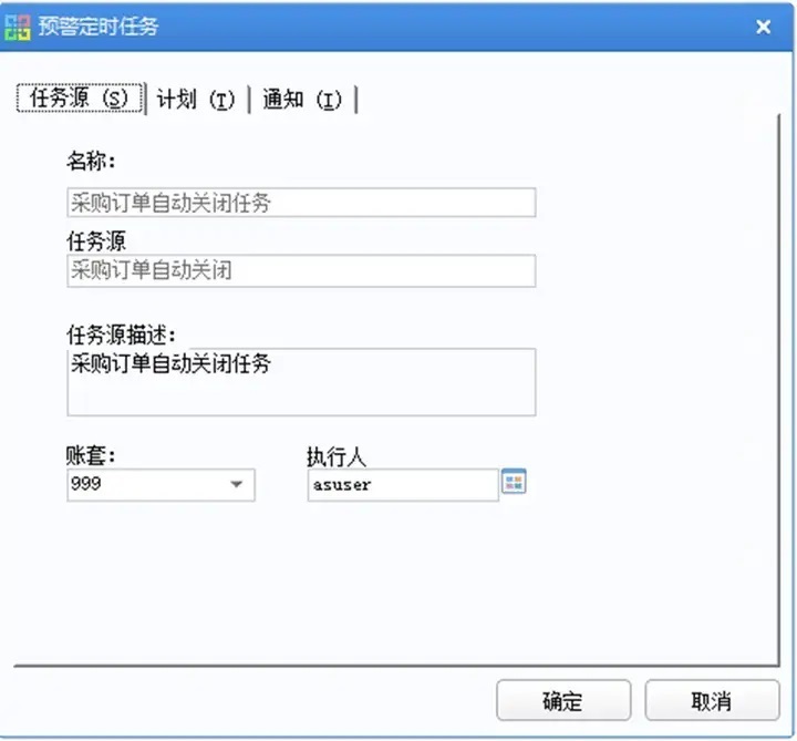 (3)在基础设置-预警与通知-预警和定时任务-定时任务源-采购管理中新增采购订单自动关闭的