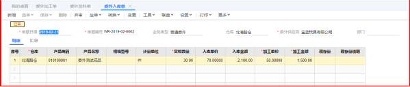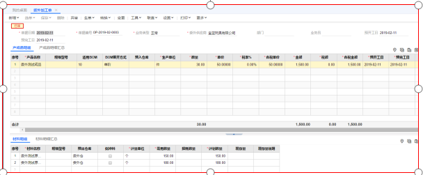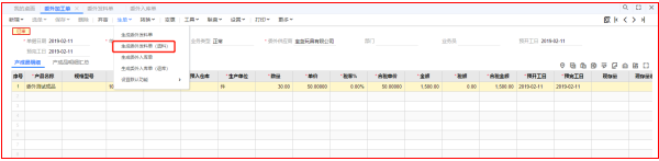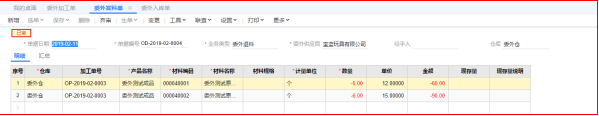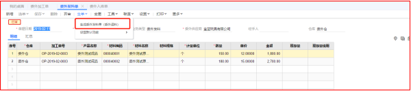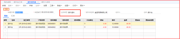 也可以直接由委外发料单生成委外发料单(委外退料)