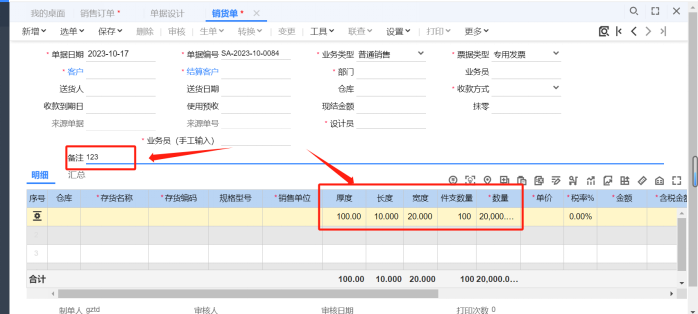 1、系统的销售订单、销货单等单据,都只有一个数量字段,不能满足需求,不然业务人员都要人工算好多少平方,然后录入,增加很大的工作量,并且都是OEM的客户比较多,备注字段放在最下面,经常导致业务人员漏写的情况 。