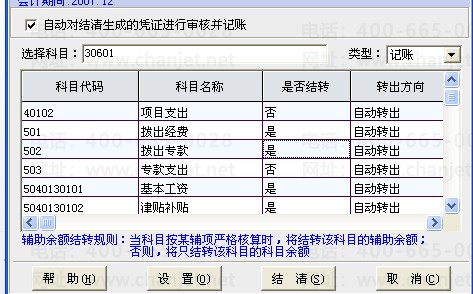 03把收入和支出类的科目一级科目(右方)都设置成自动转出(并在同步结转下级科目的结转损益方向前打对勾)