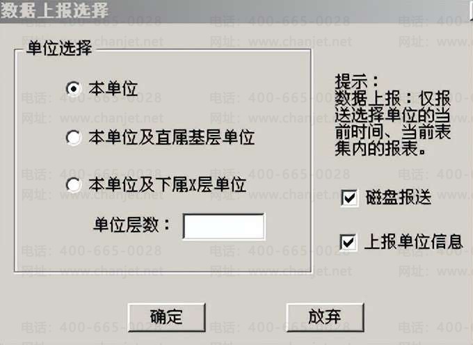 4.数据上报选择本单位和勾选“磁盘报送”、“上报单位信息”,确定后,会弹出表内和表间审核公式