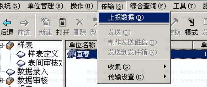 3.设置好时间后,选择该单位,点击菜单栏的传输——上报数据