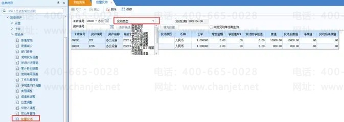 3. 当月生效:部门转移、折旧方法调整、使用年限调整、工作总量调整、类别调整、位置调整、保管人调整变动单。