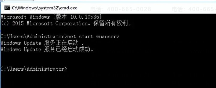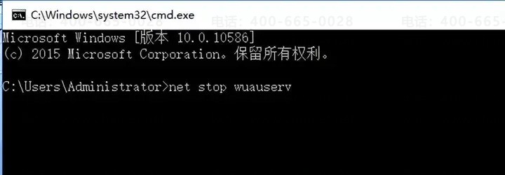 在输入net stop wuauserv点击回车,即停止了windows update的服务;
